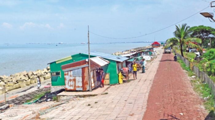 সৈকতের ১৩ কিলোমিটার এলাকা ঘুরে দেখা গেল, সাগরঘেঁষা দীর্ঘ বেড়িবাঁধ ও আশপাশের খাসজমিতে ১৮২টি পাকা ও ৯৪টি কাঁচা স্থাপনা করা হয়েছে।